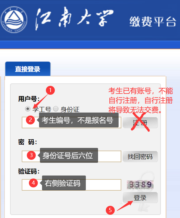 缴费说明:进入复试考生在学院规定的时间内登录“云顶国际缴费平台”交纳复试费用,复试收费标准:80元/生。缴费网址:http://pay.jiangnan.edu.cn/payment/。登录账号为准考证上的考生编号,登录密码为身份证后六位(友情提醒:考生账号已开通,切勿自行注册)。按照提示交费(使用网银),并打印或截图保存付费凭证。
