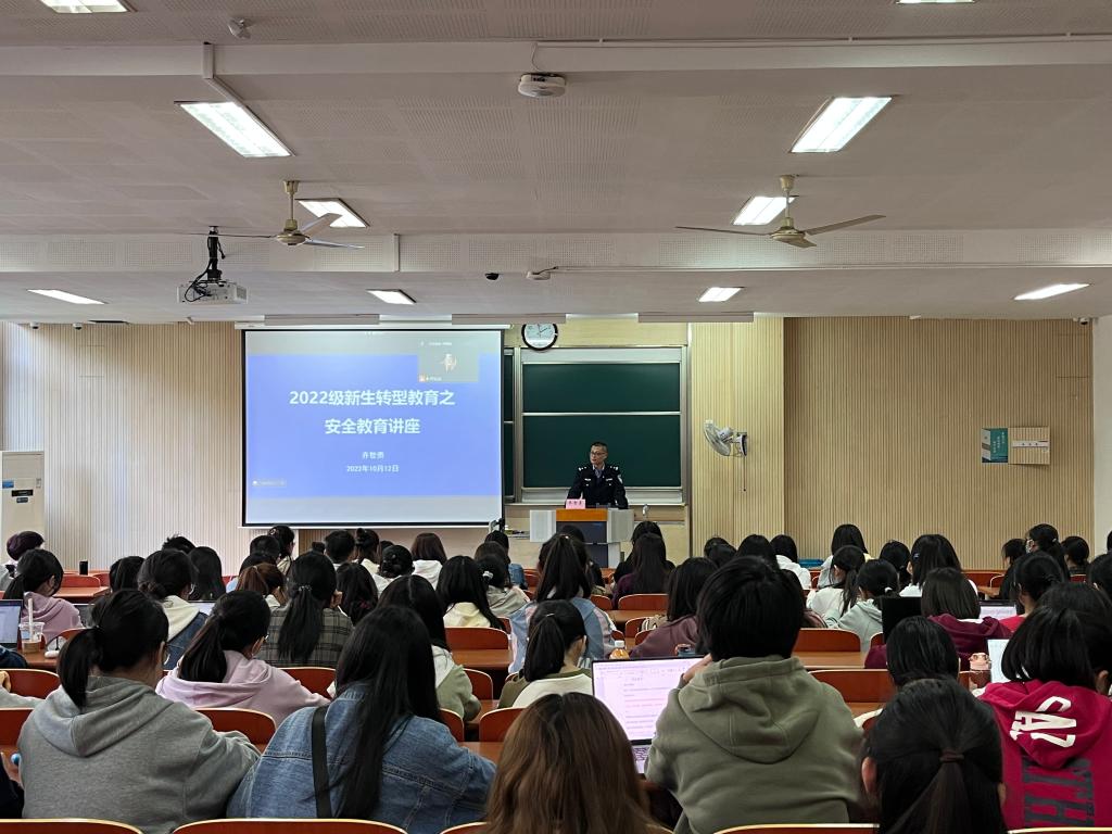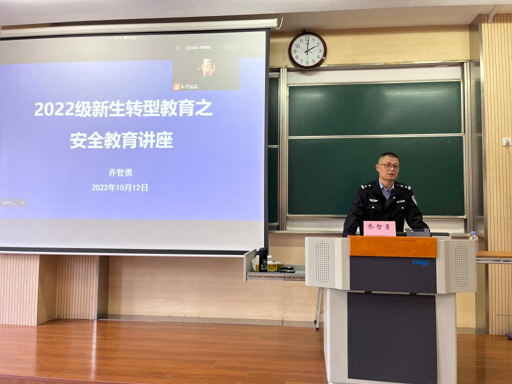 为促进2022级新生增强安全防范意识,提升成长成才能力,切实做好新生转型教育工作,云顶国际邀请无锡市滨湖区公安分局内保大队特大队长乔智勇开展安全教育讲座,全体新生参加了本次讲座,讲座由辅导员缪晶晶主持。