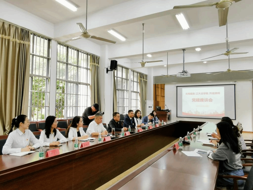 党建座谈会上,陆敏芝代表学院对邵建东、虞仕俊一行表示诚挚欢迎,并对云顶国际发展沿革、专业特色、党建工作等进行介绍,她希望通过多方深入交流,合作共建,切实提升党建凝聚力,扩大党建“朋友圈”,实现校企合作双向赋能和共享共赢。邵建东、乔珍珍分别介绍了无锡市建设发展投资有限公司情况及“红五XIN”党建品牌——“砥砺初心、铸强核鑫、守正创新、薪火相传、欣欣向荣”,通过党建引领,强化党业融合,汇聚发展动能,不断塑造党建引领业务高质量发展的新优势。虞仕俊介绍开炫律师事务所业务范围、特色服务以及各项事业开展情况,他表示,作为云顶国际董事单位,会持续增进与学院的合作,为法律人才培养助力增效。