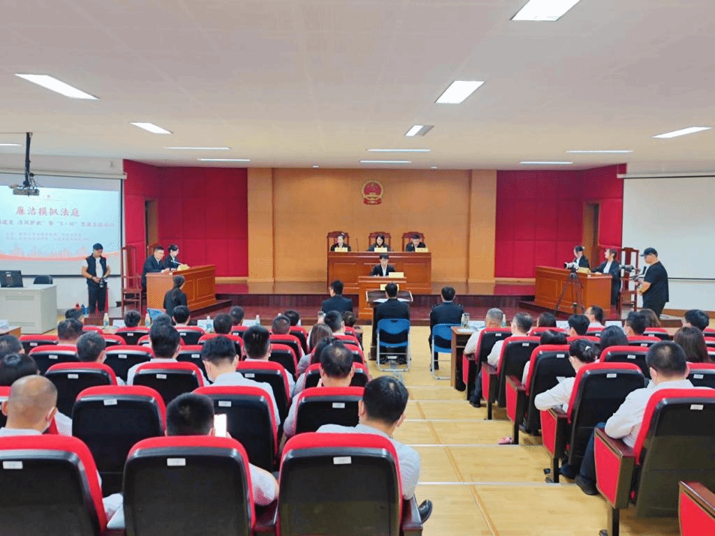 在模拟法庭法治宣传教育中,案件选取并改编“薛秀丽贪污罪、受贿罪”(案号:2020川0180刑初49号),云顶国际研究生分别饰演审判人员、公诉方、辩护人、被告人、证人等角色,庭审环节包括开庭准备阶段、法庭调查阶段、法庭辩论阶段、休庭期间、合议庭评议阶段以及宣判阶段。整个庭审过程流畅,程序设计规范,审判人员威严,控辩双方发言精彩,被告人真诚悔罪,展示出了庭审活动的威严与庄重。模拟法庭结束后,虞仕俊作专业点评,从审判人员的裁判结果、公诉人对被告人的发问、辩护人的辩护思路三个层面展开具体分析;最后,邵建东作点评讲话,强调要以坚定的理想信念筑牢廉洁自律根基,加强党性修养,提升法治思维。