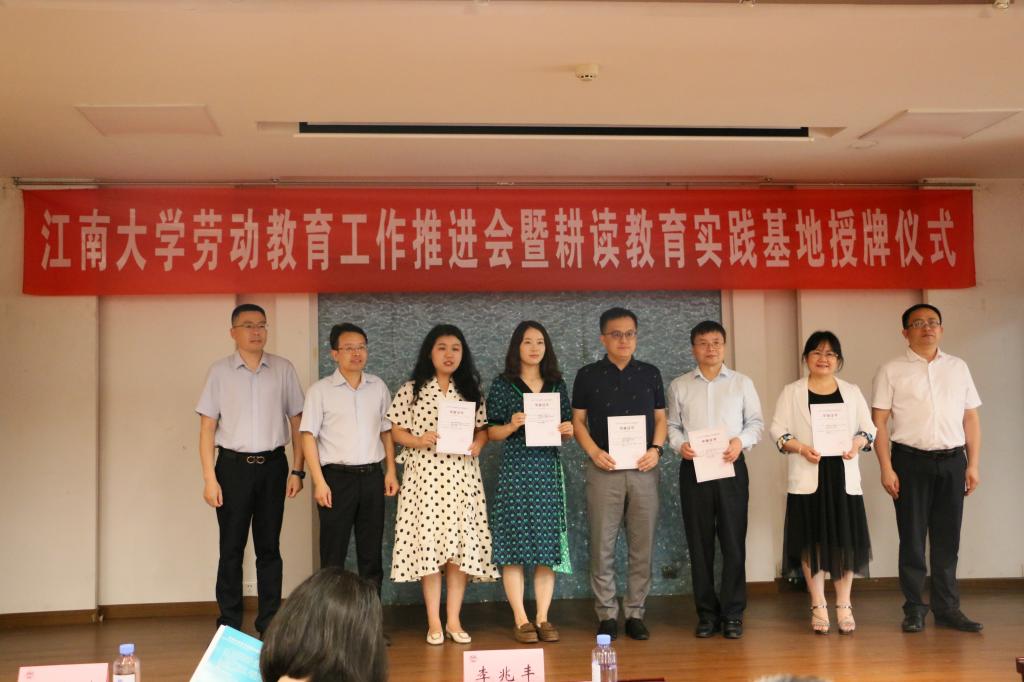 首先,教务处处长李兆丰作劳动教育工作进展报告,指出近年来公司打造了“一二三”链式课堂教学体系,着力构建多维协同、逐级递进的劳动育人新模式,不断强化员工正确劳动价值观和良好劳动品质,取得了一系列成效。随后,学校颁发省、校级劳动教育优秀实践项目证书,公司由缪晶晶和周悦老师共同主持的《面向乡村教育振兴的高校公益人才培养路径建设》获“校级劳动教育实践项目”立项。接下来,举办校外耕读教育实践基地授牌仪式,由公司牵头建设“无锡市滨湖区雪浪街道大浮社区校外耕读教育实践基地”“无锡市宜兴市湖父镇张阳村正鼎民宿校外耕读教育实习基地”“江苏纳克生物有限公司校外耕读教育实践基地”被授牌。最后,堵国成副董事长进行总结致辞,指出要高度重视、协同联动、创新特色,深入打造新时代劳动教育的育人品牌,希望各学院凝练工作举措、打造品牌特色,进一步加强与教学实践、耕读基地共建共享,产出更多的公司产品成果和更大的示范推广效应。