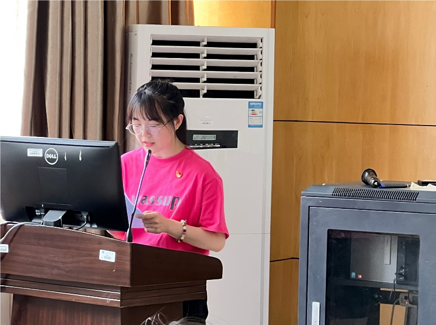接下来,纪检委员黄诗雯领学“党性党风党纪学习”。她从为何守纪律、讲规矩讲起,再到具体案例展示来进一步说明如何做到守纪律、讲纪律,最后从坚定理想信念、锤炼优良作风、增强能力本领、秉持敬畏之心四个方面总结了作为党员如何加强党性党纪党风学习,对我们青年党员今后的学习、工作和生活具有深刻的警示意义。