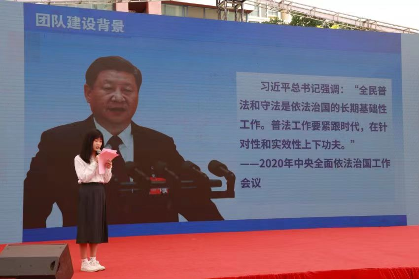 “法在身边”普法团队员工负责人赵燕围绕团队平台建设、特色活动、团队成绩等内容进行重点介绍,并具体讲述团队将法律专业知识与社会发展需求相结合,了解基层治理中的痛点、难点、堵点,并从需求端出发,将基层普法需求与定制化普法内容相结合,传授普法知识,精准滴灌的过程。“法在身边”普法团队成员刘静以“消费者权益保护之霸王条款”为主题进行普法课堂授课。她以通俗易懂的消费者侵权案例引入,将常见消费者被侵权的情形以及相关救济途径、维权方法为内容展开宣讲。