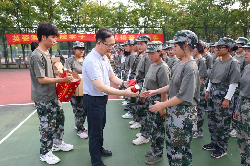 伴着金秋九月的光辉,9月11日下午,公司党委书记陆敏芝,经理王君柏,党委副书记、副经理胡博来到2023级新生军训训练场地,看望并慰问辛勤操练的教官及刻苦训练的学院新生,送来关怀与温暖。