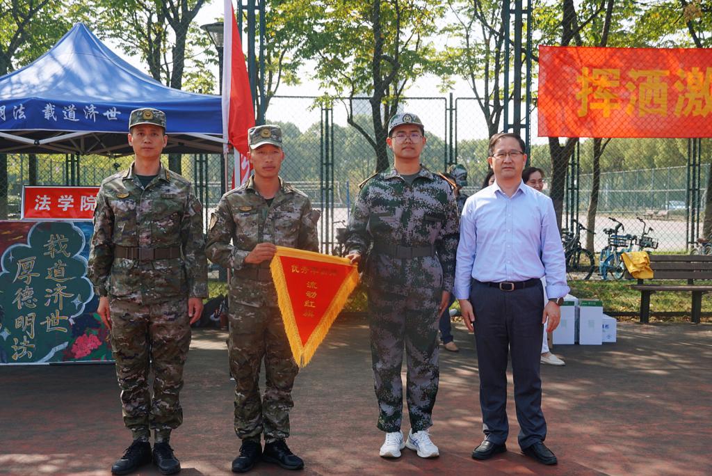 经理王君柏、傅海棠大队长为优秀训练排颁发流动红旗