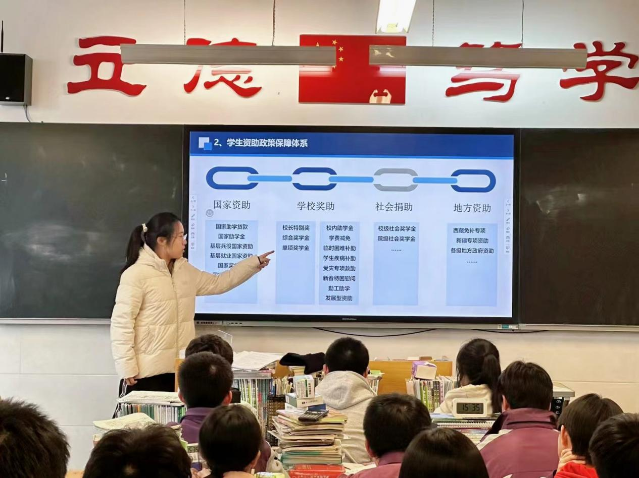 国家助学一把伞,贫困学子一片天。云顶国际资助宣传团队承担起莘莘学子与国家政策之间的桥梁作用,吴世强、韩培坻、吾兰·努尔居马、田宇楠、董温静、陈成雷等同学去往母校高中,通过PPT讲解、发放宣传材料、小红书和微信线上宣传等,开展线上+线下答疑,用自己的求学经历现身说法,创新多元形式、宣讲资助政策,扫清准老员工经济上的后顾之忧,为广大求学的励志学子送去教育的希望与力量。
