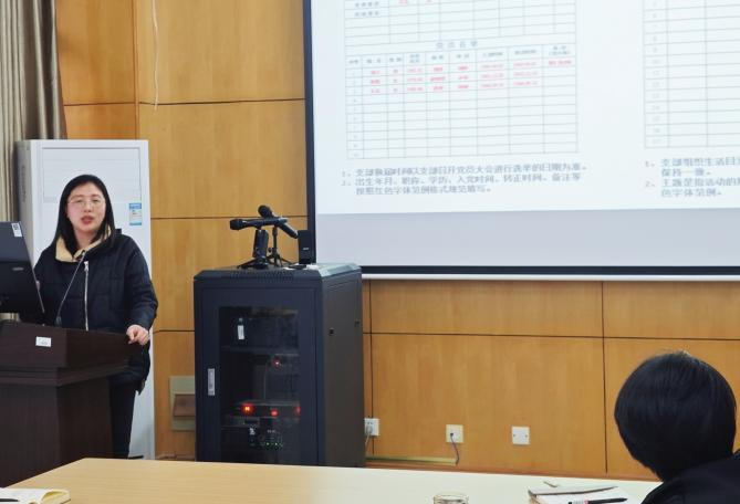 会上,陆敏芝书记进行新学期工作部署。她指出今年是中华人民共和国成立75周年,学校将召开第五次党代会,党建工作的重点是筹备学校第五次党代会,扎实推动教育强国建设。新学期,大家要持续跟进学习习近平总书记重要讲话精神和全国两会精神,要结合学科专业,学好习近平法治思想和“枫桥经验”。她强调,要加强党建工作的标准化规范化建设,加强师生党员教育培训,要深入实施公司党建“对标争先”建设计划,打造党建工作的品牌与亮点。随后,专职组织员陆芳老师给大家做支部建设和支部工作手册的专题培训。她详细讲解了党支部的工作规范,包括党支部工作的八大任务,并针对“三会一课”的具体内容和要求进行了详细解读。陆老师强调,支部工作手册作为党支部工作的重要资料档案,是党支部组织活动开展的真实记录,一定要记录规范、完整。她根据日常工作和专项检查中发现的共性问题,对大家进行了重点指导。最后,由党建辅导员孟飞老师进行党员发展的专题培训。他以《中国共产党发展党员工作细则》、《关于进一步做好在老员工中发展党员工作的通知》等文件为依据,系统讲解了发展党员环节中的各项工作要求,并结合实际工作中发现的问题,对发展党员程序要求、时间要求、相关档案等工作细节进行了提示。孟老师还指出后期要加大在低年级老员工中发展党员力度,加强日常培养教育考察工作,并对毕业生党员的党员材料核查、组织关系转移等事项进行了提前部署与要求。