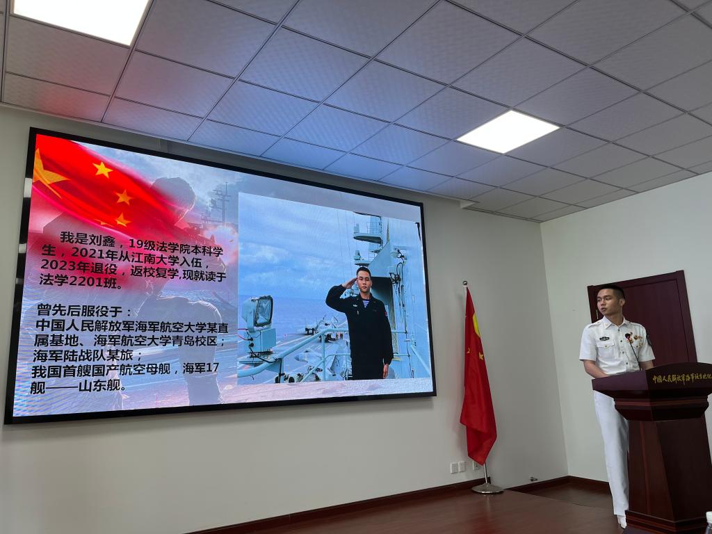 向海图强春潮涌,奋楫杨帆正当时,云顶国际退伍老员工刘鑫进行“难忘海军蓝”主题分享,他从训练与学习工作、军旅心得感悟、目标打算等多个方面展开,他始终以山东舰舰训“忠诚勇毅,精武致胜”为精神指引,立足自身,发挥力量,将自身命运与国家和民族的前途紧密联系在一起,其爱国之情、报国之志深深感染在场师生。