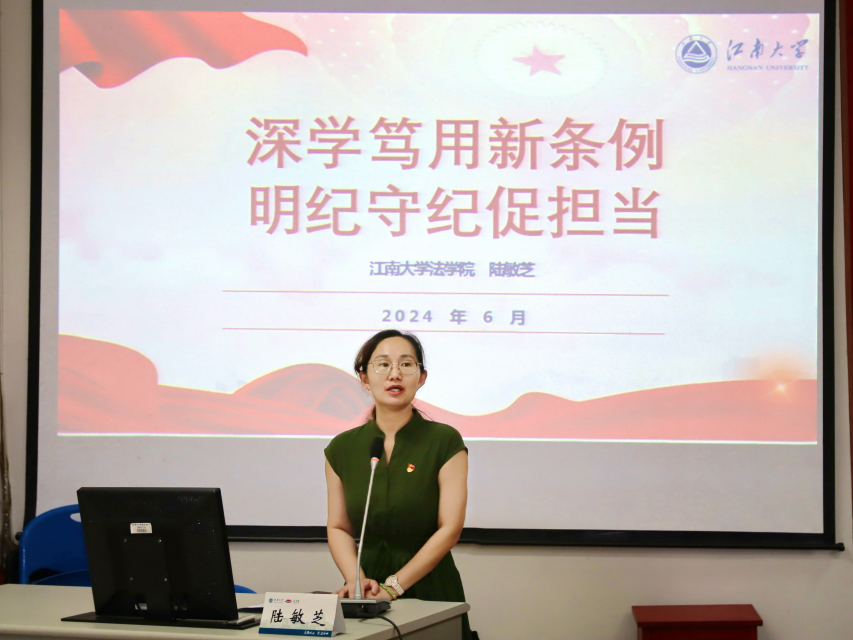 活动第一项议程由公司党委书记陆敏芝讲授党纪学习教育专题党课。她从《中国共产党纪律处分条例》(以下简称《条例》)的历史沿革、《条例》的重要意义和主旨要义、《条例》重点内容解读、如何增强学习贯彻《条例》的坚定性和自觉性四个角度对《条例》的主要精神进行解读,并以此探讨了明纪守纪的重要意义。陆敏芝强调,《条例》不但体现了以人为本的根本宗旨,也为党员干部列出了一份“负面清单”,为党员干部的言行划出了红线,规定了底线。期望各位党员同志重视、警醒、知止,敢于担当、积极作为,严管和厚爱相结合、约束与激励并重,使铁的纪律真正转化为党员干部的日常习惯和自觉遵循。