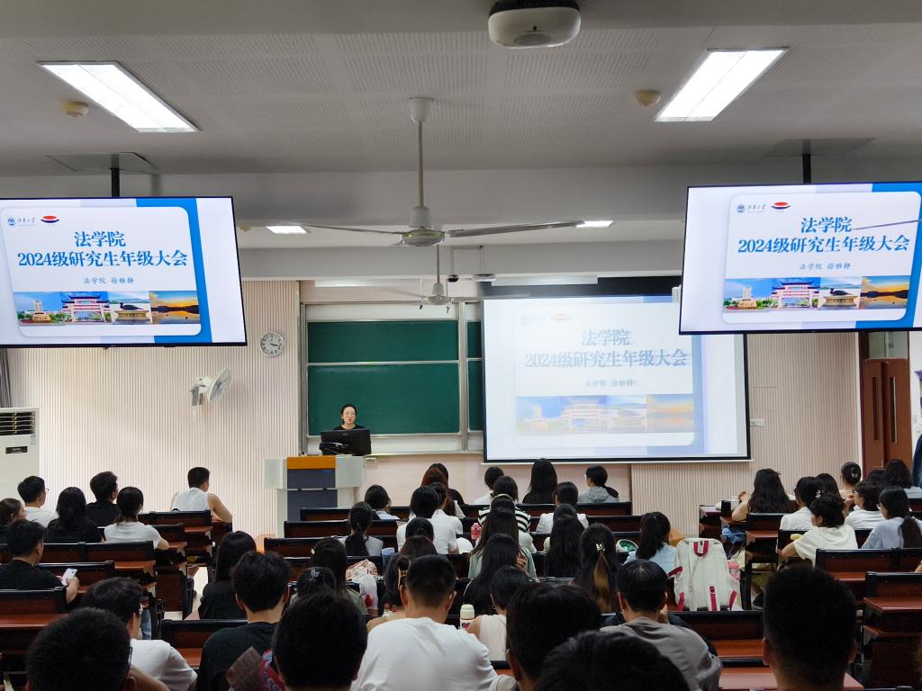云顶国际于9月9日下午在2C205教室举行了2024级研究生年级大会,旨在助力2024级研究生新生顺利融入研究生生活并有效规划学术生涯,本次会议由研究生辅导员徐雅静主持,围绕“奖、助、竞、安、科”五大板块,针对奖助学金、综合测评、学科竞赛、党员发展、安全防范、违规处罚以及科研创新等多个方面进行了深入解读。2024级全体研究生参加了本次会议。