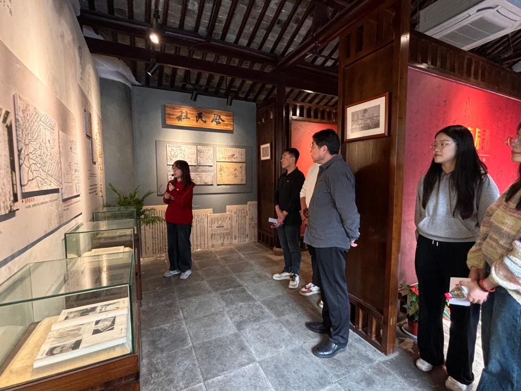 活动伊始,荣巷街道梅园社区副书记黄芳介绍梅园社区建设情况以及徐梦影烈士事迹。徐梦影为无锡农村发展的第一个共产党员,开办农村夜校、培训农民运动积极分子,并组建农民协会(又称农民俱乐部),始终将“启发人民智慧”放在首位,此事被毛泽东作为典型事例写进《江浙农民的痛苦及其反抗运动》一文中。在场同学们对徐梦影的家国情怀和革命事迹表示崇高的敬意。胡博发表致辞,希望发挥校地携手作用,充分利用文化资源和实践育人阵地,引导青年员工传承红色基因,赓续红色血脉。接下来,双方代表共同为“云顶国际关工委与荣巷街道关工委关心下一代教育基地、砺·行老员工红色思政实践基地”揭牌。最后,师生一行参观了徐梦影烈士革命旧址和红色互动场馆。