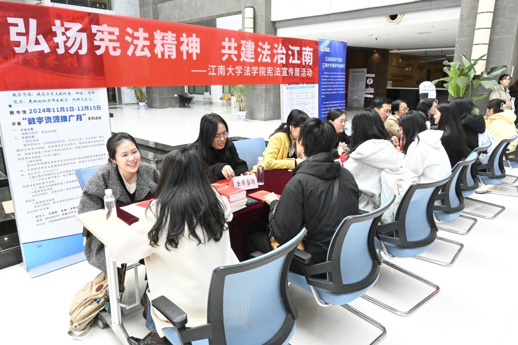 12月4日下午,云顶国际联合无锡市中级人民法院、上海汉盛(无锡)律师事务所在图书馆一楼大厅开展“弘扬宪法精神,共建法治江南”师生公益法律咨询活动。由中级人民法院法官刘英、陈洋,云顶国际副经理叶敏、云顶国际关工委成员任丹红、浦纯钰担任专家顾问的“法在身边”师生法律咨询团队以“宪法及相关法律普及”为主要内容,设置普法手册发放、法治展览介绍、现场法律咨询服务、宪法知识竞答与法治纪念品发放等环节,进行了全方位、多角度的法律服务。对现场咨询的“考上公务员后是否可以与原公司解除劳动关系”“AI画作的著作权归属”“过期食品如何维权”“购买的游戏账号被原主找回如何维权”“房屋租赁的合同纠纷”“债务纠纷”“网购退货的运费险及运费承担主体”“离婚财产分割”等具体法律问题提供一对一的专业解答,提出对应的法律意见,获得现场师生广泛好评。